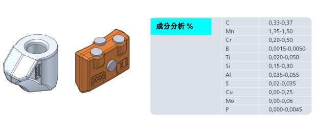 截齒座及齒靴材質是微合金熱處理鋼34MnCrB4+TiB650。